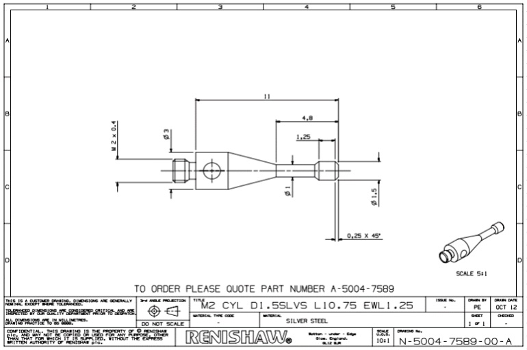 M2 Ø1.5 mm silver steel cylinder, L 10.75 mm